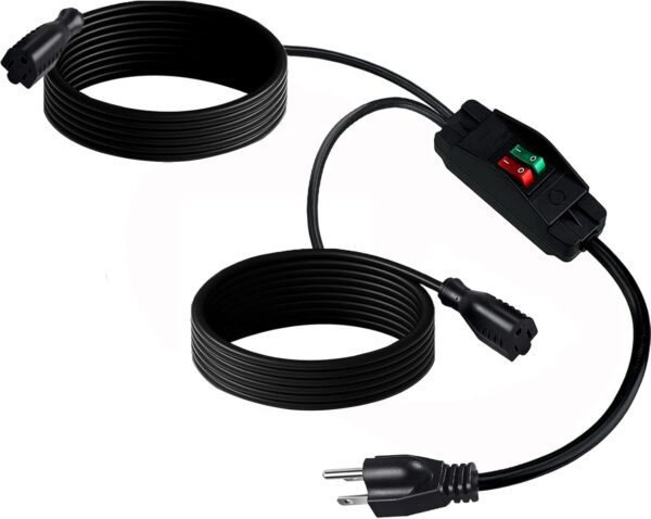 The MAKEVIVI MV‑2W‑10F‑BK is a heavy‑duty outdoor extension cord splitter built to power two devices from a single outlet, featuring a convenient inline on/off switch for easy control. Its 10‑foot SJTW‑rated main cable and grounded 3‑prong design make it well‑suited for outdoor environments, while the durable 14AWG/18AWG wiring provides reliable performance for lighting, small tools, and seasonal décor. With weather‑resistant construction that helps guard against moisture and abrasion, this splitter is a practical solution for outdoor spaces where safe, dependable power distribution is essential.