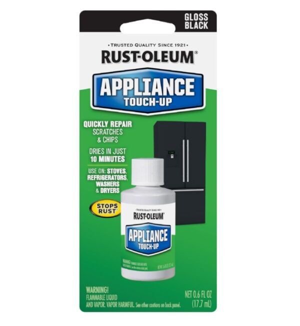 The Rust-Oleum 213174 Appliance Touch-Up Paint (0.6 oz, Black) is a specialty enamel formulated to repair chips, scratches, and minor imperfections on household appliances. Packaged in a convenient brush-bottle, it enables precise application without the need for spray equipment. Its fast-drying acrylic lacquer creates a durable, high-gloss finish that resists moisture, stains, and everyday wear, helping appliances maintain a clean, polished appearance while extending their lifespan.