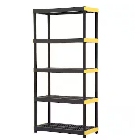 HDX 241592 5-Tier Easy Assembly Multi-Purpose Plastic Garage Storage Shelving Unit in Black (36 in. W x 74 in. H x 18 in. D)
