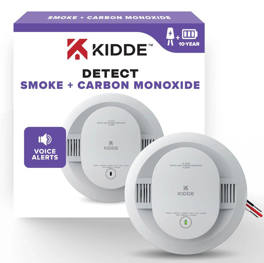 KIDDE 30CUA10-V Hardwired Smoke & Carbon Monoxide Detector, 10-Year Battery Backup, Voice Alerts, Interconnectable LED Warning Light Indicators