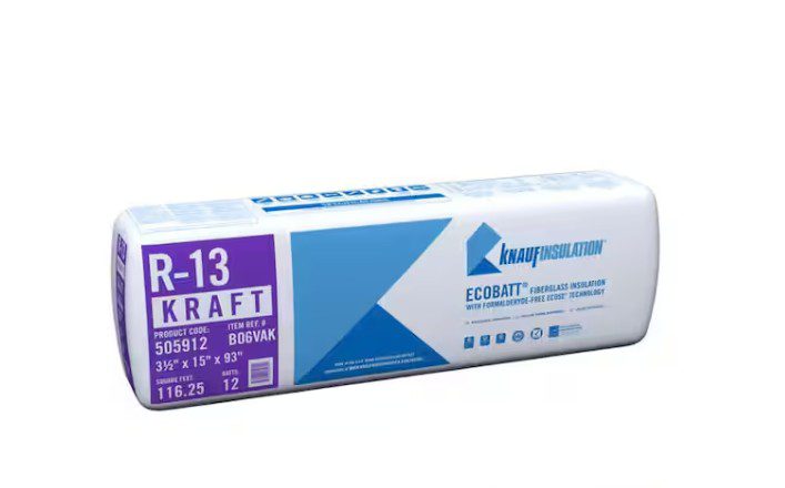KNAUF INSULATION 505912 R13 Kraft Faced 15 in. x 93 in. Precut Fiberglass Insulation Batts for 2×4 Wall – Sound-Reducing and USA Made (1-Bag)